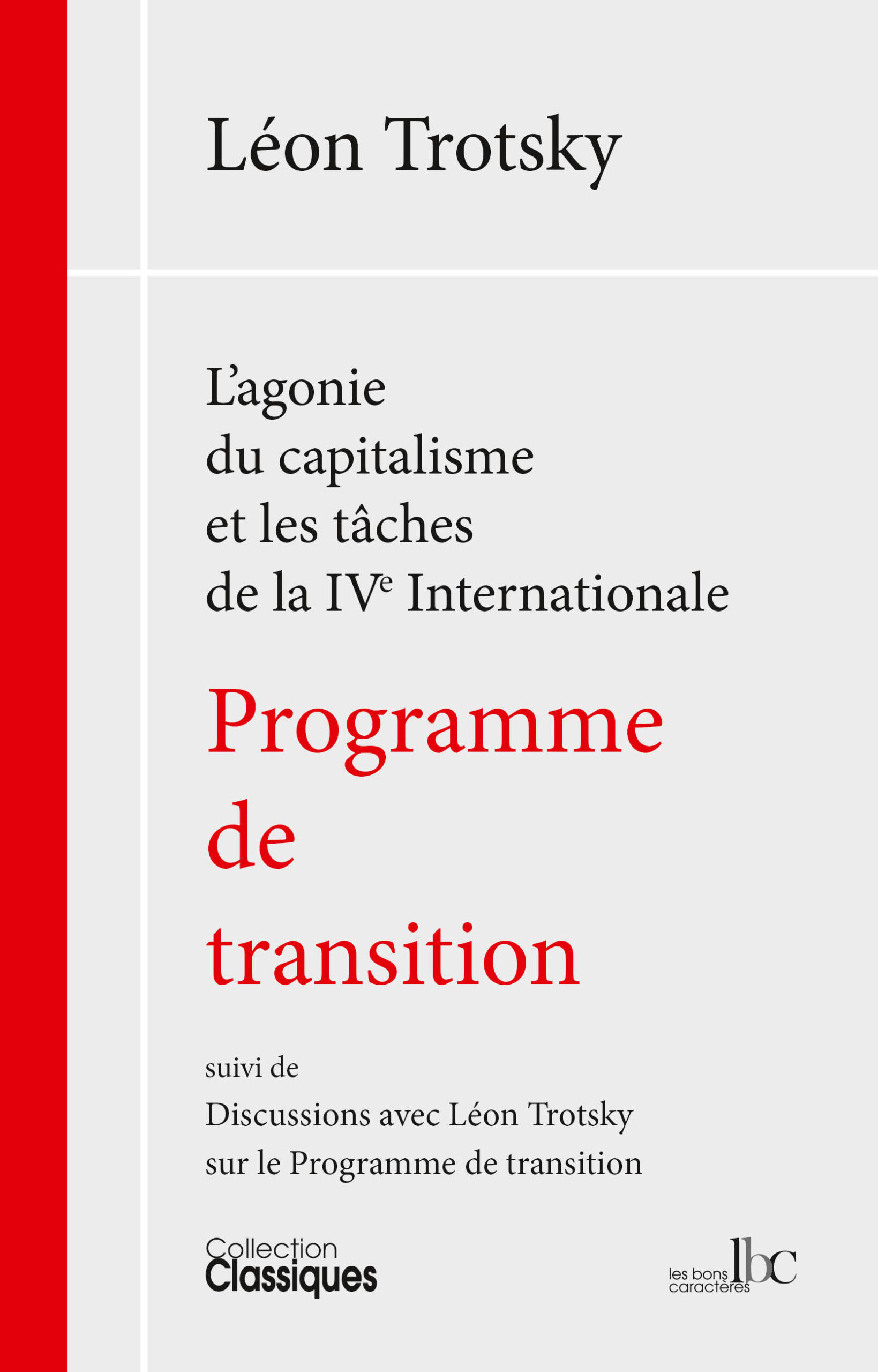 Le Programme de transition a été rédigé par Trotsky au début de 1938, un an avant qu’éclate la Seconde Guerre mondiale. Ce texte fut adopté par la conférence de fondation de la IVe Internationale en septembre 1938. Selon les mots de Trotsky, il est pour les travailleurs et militants communistes révolutionnaires « n programme d’action d’aujourd’hui jusqu’au début de la Révolution socialiste.